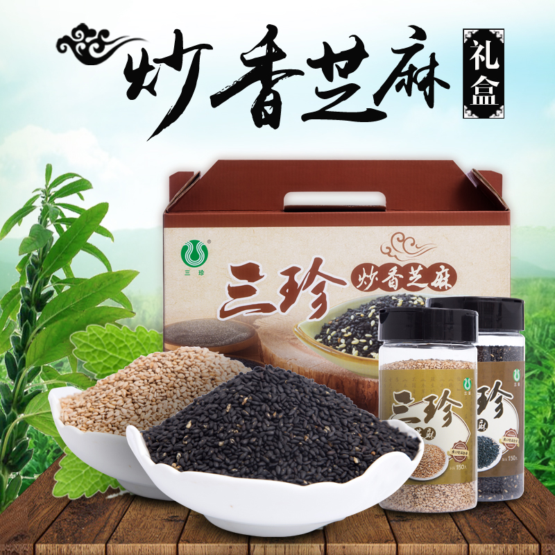三珍炒熟黑芝麻开盖即食农家五谷杂粮瓶装150g